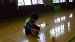 さっそく野球に挑戦!真新しいグローブはまだまだ固くてボールを捕るのも難しいですが、野球を思いっきり楽しむぞ!おー!