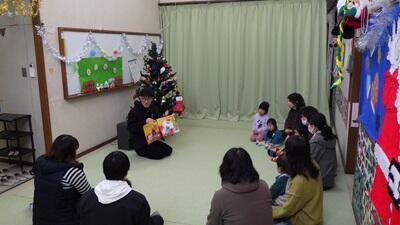 12月24日(水)に乳幼児相談室で「お楽しみ会」がありました。クリスマスツリーには1歳児さんが