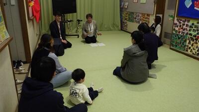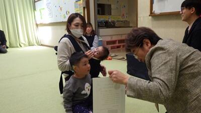 閉級式 乳幼児相談室 投稿日時 : 03/19 nyusou05 3月18日(水)で今年度の乳幼児相談室の療育を終えて「おわかれ会(閉級式)」をとり行いました。校長先生から終了証書と親子の似顔絵を手渡されて、子どもたちは嬉しそうに保護者と一緒に眺めていました。また1年間を振り返るおもいでVTRをみんなで視聴した後に、保護者からひとことずつコメントを言ってもらいました。4月からそれぞれの進路に進むことになりますが乳幼児相談室での繋がりを大切にしながら元気に過ごしてほしいと思います。