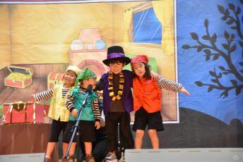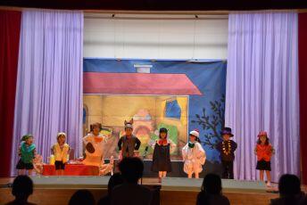 10月18日(土)に学習発表会がありました。今年の幼稚部の劇は「ブレーメンの音楽隊」でした。大好きなパパやママに大きな拍手がもらえるように、毎日一生懸命練習に取り組みました。本番は、たくさんのお客さんがいてドキドキしていましたが、今までの頑張りを自信にして堂々とステージに立って、発表することができました。4匹の動物たちが息を揃えて脅かして、泥棒たちが逃げ回る場面は特に1人1人が輝いていました。劇が終わった後は、やりきった表情で「楽しかった~!」とステージから戻ってきました。素晴らしいブレーメンの音楽隊でした!よくがんばったね!!